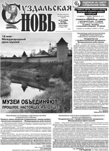 Газета основана 21 марта 1918 г. № 35 (12608) пятница, 16 мая 2025 г. Общественно политическая газета 12+ Справки по телефону 8 (49231) 2-08-95. ПОДПИСКА НА ГАЗЕТУ «СУЗДАЛЬСКАЯ НОВЬ» Реклама С ЛЮБОГО ЧИСЛА, ЛЮБОГО МЕСЯЦА ОФОРМИТЬ ПОДПИСКУ МОЖНО В РЕДАКЦИИ по адресу: г. Суздаль, Красная пл., д.1, каб.12,18. СТОИМОСТЬ ПОДПИСКИ НА 1 МЕСЯЦ: с доставкой на дом - 77 рублей (г. Суздаль, не менее 5 экземпляров); по району - 82 рубля; с получением в редакции - 67 рублей. 18 мая - Международный день музеев УВАЖАЕМЫЕ РАБОТНИКИ МУЗЕЕВ ВЛАДИМИРСКОЙ ОБЛАСТИ И ВЕТЕРАНЫ МУЗЕЙНОГО ДЕЛА! Поздравляю вас с профессиональным праздником – Международным днём музеев. Музеи – не просто хранилища артефактов и исторических реликвий. Это зеркало, в котором можно увидеть прошлое, понять настоящее и заглянуть в будущее. Сегодня мы выражаем огромную благодарность хранителям, реставраторам, научным сотрудникам, экскурсоводам и всем, кто бережно хранит наследие предков, кто своим трудом и энтузиазмом делает музеи доступными и интересными для каждого посетителя. Благодаря вам всё больше людей осознают значимость музеев как центров культуры и просвещения. Рост посещаемости – тому пример. Только за прошлый год федеральные, государственные и муниципальные музеи области посетили более 2 миллионов человек. Музеи региона значимы и неповторимы, от самого крупного Владимиро-Суздальского музея-заповедника до небольших краеведческих и частных музеев в малых городах. Все они хранят свидетельства минувших эпох – произведения живописи и скульптуры, декоративно-прикладного искусства, археологические находки, уникальные документы и фотографии. Это бесценный источник знаний для всех, кто стремится познать мир, свои корни, осознать причастность к великой русской культуре. Правительство Владимирской области уделяет особое внимание поддержке музейного дела. В прошлом году в рамках нацпроекта «Культура» было приобретено экспозиционное и мультимедийное оборудование для Муромского историко-художественного музея, Литературно-художественного музея Марины и Анастасии Цветаевых в Александрове, Киржачского историко-краеведческого музея и Ковровского районного музея. В Год защитника Отечества и 80-летия Победы одна из важнейших задач – отстаивание исторической правды не только о Великой Отечественной войне, но и о героях нашего времени. В муниципалитетах области продолжают открываться экспозиции, посвящённые специальной военной операции. Большое спасибо всем, кто делится материалами, документами, фотографиями, а также воспоминаниями тех, кто сражается с неонацистами на Донбассе. Увидеть события глазами наших военнослужащих – крайне важно, особенно для подрастающего поколения. Молодёжь должна знать, с каким злом борется наша армия, помнить об ответственности за будущее страны. Дорогие друзья, желаю вам крепкого здоровья, творческих успехов и новых интересных проектов. А.А. АВДЕЕВ, Губернатор области. Фото А. Зайковой. УВАЖАЕМЫЕ РАБОТНИКИ ВЛАДИМИРО-СУЗДАЛЬСКОГО МУЗЕЯ-ЗАПОВЕДНИКА! Поздравляем вас с профессиональным праздником – Международным Днем музеев! Суздаль – город-музей под открытым небом – гордость историко-культурного наследия всей России. Здесь можно соприкоснуться с прошлым, живо почувствовать движение истории, осознать глубину порывов человеческого духа и гения. Мы с благодарность