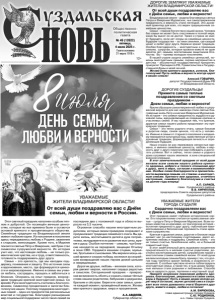 Газета основана 21 марта 1918 г. № 49 (12622) пятница, 4 июля 2025 г. Общественно политическая газета 12+ Этот светлый праздник наполнен особым теплом и добротой. Он посвящён вечным ценностям, которые во все времена были и остаются основой крепкого и процветающего общества. Семейные традиции на Владимирской земле имеют глубокие корни. Из поколения в поколение здесь передавались любовь к Родине, уважение к старшим, милосердие. Кроме того, в Муроме покоятся святые Пётр и Феврония, чей брак стал символом супружеской верности. Их история учит нас, что настоящая любовь – не только романтические чувства, но и труд, ответственность, готовность поддерживать друг друга. Семья – это крепость, где мы находим поддержку, понимание и защиту. Это источник силы и вдохновения, место, где формируются ценности и мировоззрение. Именно в семье мы учимся любить, сострадать, прощать и заботиться о ближних. Опираясь на опыт предков, возрождаем традиции крепкой многодетной семьи. Со времён Руси многодетность считалась благословением, символом процветания и залогом благополучия нации. Поэтому поддержка многодетных семей – один из приоритетов региональных властей и государства. Благодаря расширению мер социальной поддержки число таких семей за последние два с половиной года в области выросло на 3,5 тысячи. Огромное спасибо нашим многодетным родителям, которые своим примером сохраняют и приумножают традиции семейного очага. Вы дарите жизнь, воспитываете детей в духе патриотизма, вкладываете в их развитие все силы, время и душу. Особое почтение – семьям, чьи близкие находятся на передовой, защищая Отчизну в зоне СВО. Гордимся вашими отцами, мужьями, братьями и сыновьями. Мы верим в мощь нашей армии и скорую победу, молимся за скорейшее возвращение наших героев домой целыми и невредимыми. Дорогие друзья, любовь – великая сила, которая движет миром, наполняет сердца радостью и смыслом. Сегодняшний праздник – прекрасная возможность обнять и сказать самые тёплые слова нашим родителям, бабушкам и дедушкам, братьям и сёстрам. Берегите свои семьи, цените каждый момент, проведённый вместе. Желаю вам крепкого здоровья, мира и процветания. А.А.АВДЕЕВ, Губернатор области. ДОРОГИЕ СУЗДАЛЬЦЫ! Примите самые теплые поздравления со светлым праздником – Днем семьи, любви и верности! Ярким образцом самоотверженной любви и супружеской верности для нас навсегда стали святые благоверные князь Петр и княгиня Феврония Муромские. Их история – это символ преданности, мудрости и духовной силы, вдохновляющий на создание крепких и счастливых семей. И мы гордимся тем, что крепкие, дружные семьи нашего района продолжают эту прекрасную традицию. Семья – это тепло родного очага, самые близкие и дорогие люди, самое ценное, что есть у человека. Именно в семье от старшего поколения к младшему передаются культурный код, нравственные устои и духовные традиции, формирующие личность и определяющие будущее. Наша страна не раз переживала непростые времена, и именно семейные ценности, любовь и верность друг к другу помогали нам побеждать и достигать успехов. Вот и сейчас, тепло семьи и родного дома согревает наших земляков в зоне специальной военной операции. В этот замечательный праздник от всей души желаем всем семьям нашего района крепкого здоровья, доброго и теплого отношения друг к другу, жи