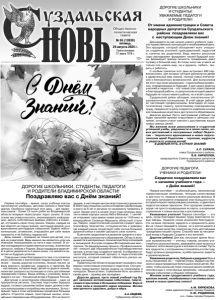 Газета основана 21 марта 1918 г. № 65 (12638) пятница, 29 августа 2025 г. Общественно политическая газета 12+ ДОРОГИЕ ШКОЛЬНИКИ, СТУДЕНТЫ, ПЕДАГОГИ И РОДИТЕЛИ ВЛАДИМИРСКОЙ ОБЛАСТИ! Поздравляю вас с Днём знаний! Первое сентября – время, когда учебные классы наполняются улыбками, детским смехом и букетами цветов. Особенно трепетный этот день – для первоклассников – более 13 тысяч ребят во Владимирской области впервые переступают порог школы. В этих стенах мы учимся мыслить, анализировать информацию, делать собственные выводы, работать в команде, отстаивать свою точку зрения. Уверен, каждый из вас обретёт не только знания, настоящих друзей, но и вдохновение для будущих свершений. Будьте любознательными, активными, открывайте для себя новые горизонты и не бойтесь трудностей. День знаний – праздник не только для детей, но и для их родителей. Ведь именно вы являетесь для них главными помощниками на пути в мир знаний. В семье закладываются нравственные основы, жизненные ценности, любовь к Родине. Ваша поддержка укрепляет в детях уверенность в своих силах, что является залогом их будущих успехов. Отдельные слова благодарности тем, кто посвятил жизнь обучению и воспитанию подрастающего поколения – нашим дорогим учителям. Низкий поклон за вашу верность профессии, мудрость и терпение. Вы – наставники, которые ведут детей по дороге знаний, помогают раскрыть их потенциал и стать достойными гражданами страны. Ваша любовь к ученикам, вера в каждого из них – бесценный вклад в будущее России. Доступное и качественное образование – один из приоритетов региона. Система подготовки будущих кадров, готовых к решению любых задач, должна отвечать всем вызовам и потребностям экономики. За пос– ледние годы в этом направлении проделана большая работа. Строятся новые, просторные школы, оснащённые современным оборудованием. Это не просто здания, а настоящие центры всестороннего развития. В 2024 году открылись школы в Коврове и Доброграде, а всего за 6 лет в регионе по нацпроекту появилось 9 школ. Кроме этого в начале этого года начались занятия в новом корпусе школы №9 в Вязниках. 1 сентяб– ря открывает свои двери новая школа на 1100 мест в микрорайоне Сновицы-Веризино областной столицы. Уверен, педагогический коллектив создаст здесь атмосферу творчества, сотрудничества и доверия, где каждый ученик почувствует себя частью большой, дружной семьи и сможет раскрыть свои таланты. В регионе продолжается развитие среднего и высшего профессионального образования. Область вкладывается в материально-техническую базу колледжей и техникумов. В ссузах созданы 60 современных мас– терских. По федеральному проекту «Профессионалитет» открыто два образовательно-производственных центра, в этом году создаётся третий. А в Муроме начался образовательный процесс в педагогическом институте, который поможет обеспечить регион новыми учителями. Правительство области продолжает оказывать поддержку талантливым ученикам и педагогам. Они дос– тойно представляют малую родину на олимпиадах и конкурсах. Ваши успехи, стремление быть лучшими в своём деле – пример для молодёжи. Дорогие друзья, пусть новый учебный год будет наполнен интересными событиями, творческими открытиями и большими победами. Верьте в свои силы и покоряйте новые вершины. Желаю вам крепкого здоровья, добра и мира. 