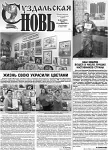 Газета основана 21 марта 1918 г. № 80 (12653) среда, 22 октября 2025 г. Общественно политическая газета 12+ ЖИЗНЬ СВОЮ УКРАСИЛИ ЦВЕТАМИ В мини-клубе «Мои года - мое богатство», руководит которым в пос. Садовый Людмила Журавлева, Почетный гражданин Суздальского района, заслуженный работник культуры РФ, прошел вечер, посвященный празднику Покрова Пресвятой Богородицы. Свою лепту в его организацию внесли и работники Комплексного центра социальной защиты населения Суздальского района. Проводить такой праздник, который именуют «Покровскими посиделками», в клубе стало уже доброй традицией. «Мы всегда к нему готовимся по-особому,- говорит Людмила Журавлева.- В этот раз мы решили устроить выставку, посвященную цветам. Так и назвали ее «Мир цветов». Члены клуба, наши гости смогли увидеть прекрасные работы,выполненные в разных стилях и техниках, послушать стихи и песни, тема которых - цветы. Я специально к этому вечеру составила интересную программу на эту тему: была и викторина про цветы, цветочный гороскоп, интересные истории, связанные с цветами. И вечер оправдал все наши ожидания - так много прекрасного смогли мы собрать с членами нашего мини-клуба. И мы были этому очень рады, ведь цветы радуют глаз, нежно волнуют душу, привязывают наши сердца к родному краю. Не зря считается, что цветы - это подарок Бога людям». Присутствующие не могли налюбоваться вышивками крестиком, бисером, лентами, картинами, выполненными в технике алмазной мозаики, из войлока. Все работы были яркими, красочными, вызывали восторг. На празднике не только отметили авторов работ, но и чествовали тех, кто своим неустанным трудом и любовью к растениям, цветам и деревьям делает поселок Садовый по- настоящему красивым и живописным на радость людям. Роман Вавилин, директор управляющей компании ООО «Универсал Строй», выделил подарки и Благодарности для награждения талантливых цветоводов, чьи старания превращают дворы поселка Садовый в прекрасные островки, цветочные оазисы. Благодарностями было отмечено порядка 10 человек. Среди них была и ветеран труда Людмила Васильевна Монашова, которая в 91 год сажает цветы у подъезда. Про каждого награжденного Людмила Журавлева говорила много теплых слов, отмечала его заслуги в благоустройстве родного поселка, рассказывала о посаженных ими цветниках и клумбах. Праздничный стол украсил большой пирог от депутата Совета народных депутатов сельского поселения Павловское Натальи Барановой. Ей члены клуба «Мои года-мое богатство» особо благодарны за помощь и поддержку. За чаем было приятное общение, слушали истории, связанные с цветами. Большой букет цветов в конце вручили главному организатору праздника - Людмиле Журавлевой. Именно ей принадлежала идея выставки «Мир цветов». К слову, Людмила Александровна и сама прекрасный цветовод. На ее приусадебном участке, начиная с ранней весны и до поздней осени, цветут цветы. Выращенными ею лилиями ежегодно любуются ее друзья и подруги, которым она любит их дарить. Уже поступило несколько заявок на просмотр выставки «Мир цветов». Очень хотят ее увидеть в Пансионате пос. Садовый для престарелых и инвалидов, учащиеся и педагоги местной школы, работники Детского сада. И Людмила Журавлева вместе с подругами по клубу этому очень рада. «Красота спасет мир . Эту истину еще никто не отменял,- говорит она - пусть 
