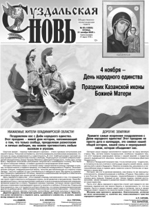 Газета основана 21 марта 1918 г. № 83 (12656) пятница, 31 октября 2025 г. Общественно политическая газета 12+ Сегодня наши сердца наполняются гордостью за нашу великую страну. Мы, жители земли Суздальской, особенно гордимся тем, что этот праздник неразрывно связан с нашей землей, с подвигом нашего выдающегося земляка, талантливого полководца Дмитрия Пожарского. Минин и Пожарский показали нам, что истинная сила – в единстве, в готовности встать плечом к плечу ради защиты своей земли, своих ценностей и своего будущего. Именно их мужество, решимость и непоколебимая вера в правое дело помогли спасти Отечество от вражеского нашествия. Сегодня, как и в те далекие времена, нам важны те же принципы: сплоченность, взаимопонимание и любовь к Родине. Наш район, как и вся Россия, богат талантливыми, трудолюбивыми и преданными своему делу людьми. Каждый из вас, своим трудом, своими достижениями, своим вкладом в развитие нашего общего дома укрепляет наше единство. Пусть этот День народного единства станет для каждого из нас поводом задуматься как важно беречь и приумножать то, что мы имеем. Пусть в наших семьях царят мир и согласие, пусть в наших сердцах живет гордость за нашу историю и вера в светлое будущее. Желаем вам крепкого здоровья, благополучия, успехов во всех начинаниях и, конечно же, неиссякаемого чувства народного единства! А.П. САРАЕВ, глава Суздальского района. В.В. КИРИЛЛОВ, председатель Совета народных депутатов Суздальского района. Смутное время – период глубочайшего кризиса – стало суровым испытанием для нашей страны. Польские интервенты, воспользовавшись внутренними раздорами, посягнули на нашу независимость и идентичность. В этот тяжёлый момент русский народ проявил свой патриотизм и волю к свободе. Люди разных сословий и вероисповеданий объединились вокруг Кузьмы Минина и Дмитрия Пожарского, чтобы дать отпор врагу. Народное ополчение разгромило оккупантов и освободило столицу. Это была не просто военная победа, а символ духовного возрождения всей нации. Сегодня в России в мире и согласии живут представители разных народов и культур, которые помнят о подвиге предков, отстоявших независимость Родины. Экономические санкции, информационные войны, попытки дестабилизации со стороны стран Запада – всё это требует от нас сплочённости и твёрдости духа. Мы едины в стремлении сохранить суверенитет Отчизны, защитить национальные интересы и обеспечить достойное будущее для наших детей и внуков. День народного единства – это в первую очередь напоминание о том, что каждый из нас несёт ответственность за будущее страны, за её развитие и процветание. Наши Вооружённые Силы с честью выполняют свой долг в зоне специальной военной операции, проявляя мужество и отвагу. Гордимся нашими героями, которые своим самоотверженным служением подтверждают верность присяге и любовь к Отечеству. Отдельная благодарность тем, кто трудится на благо общества, кто своим примером вдохновляет других на добрые дела, обеспечивает благополучие соотечественников – строителям, инженерам, учёным, врачам, учителям, волонтёрам, деятелям культуры и искусства. Дорогие друзья, желаем вам крепкого здоровья, мира и согласия. Помните, что успех начинается с первого шага, сделанного совместно, а значит, важен вклад каждого из нас. А.А.АВДЕЕВ, Губернатор Владимирской област