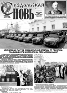 Газета основана 21 марта 1918 г. № 90 (12663) среда, 26 ноября 2025 г. Общественно политическая газета 12+ КРУПНЕЙШАЯ ПАРТИЯ ГУМАНИТАРНОЙ ПОМОЩИ ОТ ПРИХОЖАН ВЛАДИМИРСКОЙ МИТРОПОЛИИ ОТПРАВЛЕНА НА СВО 21 ноября, в день Архистратига Михаила, небесного заступника всех воинов, была освящена и отправлена на СВО крупнейшая партия гуманитарной помощи – техника и снаряжение, закупленные на пожертвования прихожан Владимирской митрополии для бойцов. Прихожане храмов региона и всей митрополии продолжают активную поддержку наших солдат. Помимо дорогостоящей техники и специального оборудования, в зону СВО были отправлены медикаменты, предметы первой необходимости, теплая одежда и продукты питания. Было отправлено: Автомобильная техника · Автомобили УАЗ-«Буханка» – 4 ед. · Автомобили УАЗ «Хантер» – 2 ед. · Автомобили LADA «Нива» – 8 ед. · Автомобиль ГАЗ «Садко» – 1 ед. · Пикап Sollers ST6 – 1 ед. · Пикап Foton Tunland – 1 ед. Мототехника · Квадроциклы — 16 ед. · Мотоциклы – 30 ед. Специальное оборудование и снаряжение · Беспилотные летательные аппараты (БПЛА) · Термонакопительные инкубаторы для БПЛА · Аккумуляторы для БПЛА · Спутниковые интернеттерминалы «Старлинк» · Дизельные генераторы · Инверторные генераторы · Бензопилы · Защитные шлемы · Бронежилеты · Медицинские аптечки · Рации и средства связи · Зарядные устройства и аккумуляторы. Чин освящения гуманитарного груза и техники провел лично митрополит Владимирский и Суздальский Никандр. https://vk.com/vladimir_eparhia В СУЗДАЛЕ ПРОЙДЁТ СУВОРОВСКИЙ СБОР Сегодня в Центре культуры и досуга города Суздаля пройдёт Суворовский сбор, посвящённый 295-летию прославленного полководца Александра Васильевича Суворова. Начало общего сбора в 11.30.