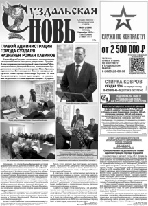 Газета основана 21 марта 1918 г. № 93 (12666) пятница, 5 декабря 2025 г. Общественно политическая газета 12+ СТИРКА КОВРОВ СКИДКА 20% на первую чистку 8-920-935-45-45 доставка бесплатно Реклама. Напомним, что после Алисы Бирюковой, которая проработала в этой должности менее двух лет и досрочно прекратила свои полномочия по собственному желанию, эта должность осталась вакантной. В соответствии с Уставом города Суздаля был объявлен конкурс на замещение должности главы администрации Суздаля. Возглавила конкурсную комиссию Татьяна Срибная, первый заместитель главы администрации Суздальского района по внутренней и социальной политике. Документы на конкурс подали три человека: Роман Кавинов, заместитель председателя ЗС Владимирской области, Дмитрий Кириллов, и.о. главы администрации г. Суздаля и Татьяна Михайлова, начальник юридического отдела администрации города Суздаля. О результатах проведенного конкурса депутатам доложила Татьяна Срибная. На голосование депутатам были предложены две кандидатуры: Романа Кавинова и Татьяны Михайловой. Дмитрий Кириллов снял свою кандидатуру. Затем Роман Кавинов и Татьяна Михайлова выступили перед депутатами, рассказав коротко свою биографию и факты из трудовой деятельности. После этого вопрос был поставлен на голосование. Большинство депутатов проголосовало за Романа Кавинова. В связи с этим, Совет решил - назначить на должность главы г. Суздаля Романа Валерьевича Кавинова. В ответном слове он поблагодарил депутатов за оказанное ему доверие и сказал, что готов работать на благо города Суздаля и его жителей. Он отметил уникальность города, как исторического и культурного центра России, жемчужины Золотого кольца, что вместе с депутатами и администрацией города он будет эффективно и плодотворно решать текущие городские проблемы и задачи. К работе он будет готов приступить с 25 декабря, так как ему нужно завершить дела, связанные с деятельностью в Законодательном Собрании Владимирской области, где он является не только заместителем председателя ЗС, но и возглавляет два комитета. К тому же, сейчас идет работа над бюджетом Владимирской области на 2026 год и на плановый период 2027 и 2028 годов, в которой он участвует. Ирина БЕЛАН. Фото С. Филимоновой. СОВЕТ НАРОДНЫХ ДЕПУТАТОВ МУНИЦИПАЛЬНОГО ОБРАЗОВАНИЯ ГОРОД СУЗДАЛЬ Р Е Ш Е Н И Е от 03.12.2025 г. № 31 О назначении на должность главы администрации города Суздаля В соответствии с частью 1 статьи 35.2. Устава муниципального образования город Суздаль Владимирской области, на основании решения конкурсной комиссии муниципального образования город Суздаль по проведению конкурса на замещение должности главы администрации муниципального образования город Суздаль Суздальского района Владимирской области от 03 декабря 2025 № 4 «О представлении Совету народных депутатов муниципального образования город Суздаль кандидатов для назначения на должность главы администрации города Суздаля», Совет народных депутатов муниципального образования город Суздаль решил: 1. Назначить на должность главы администрации города Суздаля Кавинова Романа Валерьевича. 2. Главе города Суздаля заключить контракт с главой администрации города Суздаля Кавиновым Р.В. с 25 декабря 2025 года, на срок, установленный частью 4 статьи 35.2. Устава муниципального образования город Суздаль. 3. Настоящее решение вст