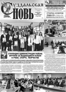 Газета основана 21 марта 1918 г. № 98 (12671) среда, 24 декабря 2025 г. Общественно политическая газета 12+ В конце года по сложившейся доброй традиции глава района Алексей Сараев вручил стипендии одаренным детям и подросткам, добившимся выдающихся успехов в течение года в учебе, спорте и творчестве. В этом году стипендиатами администрации Суздальского района стали 50 его юных жителей. СТИПЕНДИИ АДМИНИСТРАЦИИ РАЙОНА ВРУЧИЛИ ЗА ВЫДАЮЩИЕСЯ УСПЕХИ В УЧЕБЕ, СПОРТЕ, ТВОРЧЕСТВЕ Будущее Суздальской земли. Алексей Сараев поблагодарил стипендиатов за их труд и стремление к знаниям, а также поздравил с наступающим Новым годом. К его теплым словам присоединились заместитель главы Татьяна Срибная и начальник управления образования и молодежной политики Екатерина Маркина. Церемония награждения прошла по нескольким номинациям, каждая из которых отметила выдающиеся достижения наших ребят. В номинации «Образование и наука» отмечены 15 учащихся, продемонстрировавших блестящие результаты в учебе и добились успехов на районных и региональных олимпиадах, конкурсах и конференциях. В номинации «В области спорта» - 6 юных спортсменов, показавших невероятную силу духа, выносливость и волю к победе. В номинации «В области культуры и творчества» - 9 юных талантов. В номинации «В области детского и молодежного общественного движения» 9 активных ребят отмечены за их неравнодушие, инициативность и вклад в развитие нашего общества. 10 студентов получили заслуженные награды за свои успехи в учебе и профессиональном становлении. Также были вручены премии администрации Суздальского района в области добровольчества. Лучшим добровольческим отрядом признан отряд «Забота» Суздальского индустриально-гуманитарного колледжа под руководством Ольги Александровны Логиновой. Награды получили и педагоги-волонтеры колледжа, а также заместитель директора средней школы г. Суздаля Ирина Николаевна Бакрина. Суздальский район гордится каждым из стипендиатов! Уверены, что их достижения – это только начало их большого жизненного пути. Желаем вам, ребята, не останавливаться на достигнутом, верить в свои силы и продолжать покорять новые вершины в жизни! Фамилии и имена стипендиатов смотрите на 4 стр. Фото https://vk.com/suzdalregion СТИРКА КОВРОВ СКИДКА 20% на первую чистку 8-920-935-45-45 доставка бесплатно Реклама. Справки по телефону 8 (49231) 2-08-95. ПОДПИСКА НА ГАЗЕТУ «СУЗДАЛЬСКАЯ НОВЬ» НА 1-е ПОЛУГОДИЕ 2026 ГОДА Реклама ОФОРМИТЬ ПОДПИСКУ МОЖНО В РЕДАКЦИИ по адресу: г. Суздаль, Красная пл., д.1, каб.12,18. Стоимость подписки: с доставкой на дом - 460 руб. (г. Суздаль, не менее 5 экземпляров); по району - 490 руб., с получением в редакции - 400 руб. на 6 месяцев.