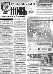 ПРОГРАММА ТВ общественноJ политическая газета УЗДАЛЬСКАЯ 2 № 102 (12675) среда, 31 декабря 2025 г. ВТОРНИК, 6 ЯНВАРЯ ПЕРВЫЙ КАНАЛ 6:00, 10:00, 12:00, 18:00 «Новости». 6:10 Х/ф «КОВЧЕГ» (12+). 7:20 Х/ф «КОРОЛЕВСТВО КРИВЫХ ЗЕРКАЛ» (0+). 8:50 «Золотая коллекция Союзмультфильма» (0+). 10:15 Д/ф «Чудо Николая Чудотворца» (0+). 11:05 «Вспомнить всё» (12+). 12:15 Х/ф «ОГОНЬ, ВОДА И... МЕДНЫЕ ТРУБЫ» (0+). 13:50 Т/с «ЗНАХАРЬ» (16+). 15:55 Т/с «ТАКСИ ПОД ПРИКРЫТИЕМ» (16+). 18:20 «Веst «Угадай мелодию» (12+). 19:00 Т/с «КАЗАНОВА» (16+). 20:00, 21:35 «Сегодня вечером» (16+). 21:00 «Время». 23:00 «Рождество Христово. Трансляция из Храма Христа Спасителя». 1:15 «Подкаст. Лаб» (16+). РОССИЯ 4:30 Т/с «МЕСТО ВСТРЕЧИ ИЗМЕНИТЬ НЕЛЬЗЯ» (16+). 5:45 Т/с «ЧЁРНАЯ КОШКА» (12+). 7:40 Т/с «ЛИКВИДАЦИЯ» (16+). 9:25 «Утренняя почта с Николаем Басковым» (12+). 10:10 «Сто к одному» (0+). 11:00, 14:00, 17:00, 20:00 Вести. 11:50, 20:50 Вести. «Местное время». 12:10 Х/ф «ЗОЛОТАЯ НЕВЕСТА» (12+). 14:50 «Новая волна-2025». Праздничный концерт (12+). 17:50 «Песни от всей души» (12+). 21:00 Х/ф «МУЖУ ПРИВЕТ» (16+). 23:00 Рождество Христово. Прямая трансляция торжественного Рождественского богослужения. 1:15 Х/ф «СЕМЕЙНОЕ СЧАСТЬЕ» (12+). 2:55 Х/ф «РОДНАЯ КРОВИНОЧКА» (12+). НТВ 4:35, 8:20 Т/с «МОРСКИЕ ДЬЯВОЛЫ. ПОЛЯРНЫЙ КОНВОЙ» (16+). 8:00, 10:00, 16:00, 19:00 Сегодня. 8:30 «Рождественская песенка года» (0+). 10:20 Т/с «ДИНОЗАВР» (16+). 16:20 Т/с «МУХТАР. ОН ВЕРНУЛСЯ» (16+). 19:30 Т/с «ПЕРВЫЙ ОТДЕЛ» (16+). 23:45 Х/ф «НАСТОЯТЕЛЬ» (16+). 1:45 Т/с «ПЯТЬ МИНУТ ТИШИНЫ. СИМБИРСКИЕ МОРОЗЫ» (12+). РЕН ТВ 5:00, 4:50 «Тайны Чапман» (16+). 6:00 «С бодрым утром!» (16+). 8:30, 12:30, 19:30 Новости (16+). 8:45 Х/ф «ХОТТАБЫЧ» (16+). 10:25 Х/ф «ОСОБЕННОСТИ НАЦИОНАЛЬНОЙ ОХОТЫ» (16+). 12:20, 12:45 Х/ф «ОСОБЕННОСТИ НАЦИОНАЛЬНОЙ РЫБАЛКИ» (16+). 14:30 Х/ф «ПАРЕНЬ С НАШЕГО КЛАДБИЩА» (12+). 16:20 Х/ф «ЗЛОЙ ГОРОД» (12+). 19:45 Х/ф «БАЛКАНСКИЙ РУБЕЖ» (16+). 22:40 Х/ф «КРАСНЫЙ ШЕЛК» (16+). 1:30 Т/с «БАНДИТСКИЙ ПЕТЕРБУРГ: БАРОН» (16+). 3:10 Т/с «БАНДИТСКИЙ ПЕТЕРБУРГ: АДВОКАТ» (16+). ТВ ЦЕНТР 6:35 Х/ф «ПАРИЖАНКА» (12+). 8:20 Т/с «ЖЕНСКАЯ ЛОГИКА» (16+). 10:25, 5:40 «Наша смешная жизнь» (16+). 11:15 «Анекдот-клуб «Нехмурые люди» (16+). 11:50, 3:25 Д/ф «Александра Пахмутова. Ты моя мелодия..» (16+). 12:35 Т/с «СЕЛЬСКИЙ ДЕТЕКТИВ. ЛОВУШКА ДЛЯ МЕРТВЕЦА» (12+). 14:30, 22:00 События (16+). 14:45, 6:15 «Новогодний смехомарафон» (12+). 15:40, 4:05 Д/ф «Карцев, Ильченко, Жванецкий. Жизнь на троих» (16+). 16:30 Х/ф «ВМЕСТЕ С ВЕРОЙ» (12+). 18:35 Х/ф «ОДНА ТЕНЬ НА ДВОИХ» (16+). 22:15 Д/с «Актерские игры» (16+). 23:40 Д/ф «Русские тайны. Загадка Богородицы» (16+). 0:20 Д/ф «Земная жизнь Богородицы» (12+). 1:00 Д/ф «Земная жизнь Иисуса Христа» (16+). 1:50 Х/ф «ЯНТАРНЫЕ КРЫЛЬЯ» (12+). 4:45 Д/ф «Георг Отс. Публика ждёт..» (16+). ТНТ 5:50, 3:35 «Однажды в России» (16+). 9:15 Т/с «ПРАЗДНИКИ» (16+). 14:25 Х/ф «САМОИРОНИЯ СУДЬБЫ» (16+). 16:00 Х/ф «НЕБРИЛЛИАНТОВАЯ РУКА» (16+). 19:00 Х/ф «ИВАН ВАСИЛЬЕВИЧ МЕНЯЕТ ВСЕ» (16+). 21:20 Х/ф «НЕВЕРОЯТНЫЕ ПРИКЛЮЧЕНИЯ ШУРИКА» (16+). 0:15 Х/ф «1+1» (18+). 2:05 Х/ф «СПАСТИ САНТУ» (12+). СТС 6:00 М/с «Три кота» (0+). 6:25 М/с «Детектив Финник» (0+). 7:40 М/ф «Домовые ждут Новый год» (0+). 7:45 М/ф «Зверокрекеры» (6+). 9:45 Х/ф «ВЕДЬМА ЛИЛЛИ И ЗАКОЛДОВАННОЕ РОЖДЕСТВО» (12+). 11:45 Х/ф «ПРИКЛЮЧЕНИЯ ТЕДДИ» (6+). 13:10 Х/ф «ПРИКЛЮЧЕНИЯ ПАДДИНГТОНА» (6+). 15:05 Х/ф «ПРИКЛЮЧЕНИЯ ПАДДИНГТОНА 2» (6+). 17:15 Х/ф «ПРИКЛЮЧЕНИЯ ПАДДИНГТОНА 3» (6+). 19:20 Х/ф «ДЕВЯТЬ ЖИЗНЕЙ» (16+). 21:00 Х/ф «2+1» (16+). 23:20 Х/ф «КРАСАВИЦА И ЧУДОВИЩЕ» (16+). 1:20 Х/ф «РОЖДЕСТВЕНСКОЕ МЕНЮ» (12+). 2:45 Х/ф «ОДНИ ДОМА» (16+). 4:00 Т/с «КУХНЯ» (16+). ПЕТЕРБУРГ 5 КАНАЛ 5:00 Т/с «ГАЛКА И ГАМАЮН» (16+). 8:55 Т/с «НАСТОЯЩИЙ» (16+). 0:20 Т/с «МАМА-ДЕТЕКТИВ» (12+). 3:55 Х/ф «ПРИКЛЮЧЕНИЯ БУРАТИНО» (0+). ЗВЕЗДА 5:20 Т/с «ПРИКЛЮЧЕНИЯ ШЕРЛОКА ХОЛМСА И ДОКТОРА ВАТСОНА. СОКРОВИЩА АГРЫ» (12+). 7:45, 9:15 Х/ф «НЕБЕ