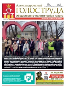 25 МАРТА 2026 г. № 19 (15570) Основана 10 июня 1917 года «Чисто не там, где убирают, а там, где не мусорят», — эти слова А. П. Чехова многие знают с детства, но мусора от этого во дворах и на улицах населённых пунктов округа не становится меньше. И вот наступило время вспомнить о такой ежегодной поре, когда в течение месяца проходят массовые мероприятия по уборке территорий от мусора. Субботники — добрая весенняя традиция, объединяющая людей. Они будут проводиться в Александровском округе с 1 по 30 апреля. Самым массовым днём, когда трудовые десанты возьмутся за грабли и лопаты, станет 18 апреля. Наведём порядок и встретим предстоящие праздники в чистоте! Стр. 16
