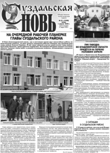 Газета основана 21 марта 1918 г. № 23 (12698) среда, 1 апреля 2026 г. Общественно политическая газета 12+ НА ОЧЕРЕДНОЙ РАБОЧЕЙ ПЛАНЕРКЕ ГЛАВЫ СУЗДАЛЬСКОГО РАЙОНА В Ново-Александровской школе, где в настоящее время идут масштабные работы по капитальному ремонту, на днях прошла очередная рабочая планерка под руководством главы района Алексея Сараева. В ней также приняли участие заместитель главы района Александр Авсеенок, представитель подрядчика. На планерке обсудили текущее состояние объекта, оценили темпы работ и решили актуальные вопросы, возникающие в процессе реконструкции. Глава района и его заместитель лично проверили ход работ, осмотрели помещения и высоко оценили качество выполнения этапов. Подрядчик уже выполнил значительную часть задач, что говорит о его профессионализме и ответственности. Фасад здания уже практически полностью готов, и его внешний вид будет таким же как у Павловской школы – современным и долговечным, из керамогранита. Он не только преобразит школу внешне, но и значительно улучшит ее теплоизоляционные характеристики. Внутри школы также активно ведутся отделочные работы, охватывающие все этажи и помещения. Вместо демонтированных старых перегородок, которые не отвечали современным требованиям к планировке и функциональности, монтируются новые. Параллельно идет штукатурка стен, подготавливая поверхности к чистовой отделке. Важным этапом ремонта является полная замена инженерных систем. Уже демонтированы старые коммуникации и канализационные трубы, которые отслужили свой срок и требовали замены. В первой половине апреля строители приступят к установке новых. В ближайшее время начнутся демонтажные и монтажные работы новой кровли.Это еще один ключевой элемент капитального ремонта, который обеспечит надежную защиту здания от атмосферных осадков и значительно улучшит теплоизоляцию. Новая кровля будет выполнена из современных материалов, гарантирующих долговечность. Одновременно с этим будет обновлена отмостка по периметру здания. Все работы на объекте ведутся в соответствии с утвержденным графиком. Фото М. Авсеенок. Ново-Александровская школа, в которой сейчас идет капитальный ремонт. Алексей Сараев, Александр Авсеенок проверяют ход работ с представителем подрядчика. Ремонтные работы в школе идут полным ходом. ПИК ПАВОДКА ВО ВЛАДИМИРСКОЙ ОБЛАСТИ ПРИДЁТСЯ НА ПЕРВУЮ ПОЛОВИНУ АПРЕЛЯ 30 марта в Правительстве Владимирской области состоялось оперативное совещание под руководством Губернатора Александра Авдеева. Главный вопрос – паводковая ситуация. Министр региональной безопасности Николай Машков сообщил, что объём воды в реках области ожидается выше нормы. Пик половодья придётся на первую половину апреля. «В наихудшем варианте развития сценария весеннего половодья в зоне подтопления могут оказаться 38 населённых пунктов в 15 муниципальных образованиях, 10 объектов экономики, 50 участков автодорог. Для снижения риска в области введён режим повышенной готовности, утверждён состав межведомственной рабочей группы по контролю прохождения весеннего половодья, определены места эвакуации населения», – сообщил Николай Алексеевич. Учтены необходимые запасы материальных средств, выполнены мероприятия по жизнеобеспечению населения, которое может оказаться в зоне подтопления. На особом контроле