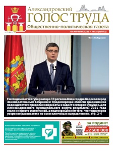 01 АПРЕЛЯ 2026 г. № 21 (15572) Основана 10 июня 1917 года Ежегодный отчёт губернатора 33 региона Александра Авдеева перед Законодательным Собранием Владимирской области традиционно подводит итоги проделанной работы и задаёт вектор на будущее. Для Александровского муниципального округа результаты 2025 года стали не просто статистикой, а подтверждением того, что территория уверенно развивается по всем ключевым направлениям. стр. 2-4 Фото Н.Лариной