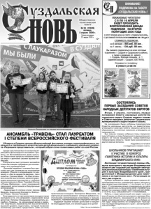 Газета основана 21 марта 1918 г. № 24 (12699) пятница, 3 апреля 2026 г. Общественно политическая газета 12+ Среди участников был и коллектив образцового фольклорного ансамбля «Травень» из Боголюбовского дома культуры. Наши юные артисты покорили сердца жюри и зрителей своими яркими номерами. Результаты выступления ансамбля стали настоящим триумфом для коллектива и его руководителей. Диплома лауреата I степени был удостоен как сам коллектив за исполнение номеров «Пошла я младшенькая по малинку» и «Как за нашим за двором», так и солисты: Гречина Майя – за блистательное сольное выступление, демонстрирующее вокальное мастерство и глубокое проникновение в образ; Тимофей Шилов и Роман Файзуллин – дуэт, покоривший гармонией, артистизмом и безупречным исполнением. Лауреатами II степени стали: Сагина Варвара, Кудельская Елизавета, Файзуллин Роман, Шилов Тимофей. Благодарности от организаторов конкурса также заслужили и те, кто направлял и вдохновлял юных артистов: Наталья Ландышева, руководитель ансамбля «Травень», за неоценимый вклад в развитие творческих возможностей воспитанников и высокий уровень подготовки, который позволил коллективу достойно представить себя на столь престижном конкурсе; Екатерина Миронова, за виртуозный аккомпанемент, который добавил выступлениям неповторимую атмосферу и эмоциональность, подчеркнув красоту народных мелодий. Гордимся нашими юными артистами и искренне благодарим всех, кто вложил душу в их успех! https://vk.com/suzdalregion Наталья Ландышева со своими воспитанниками. АНСАМБЛЬ «ТРАВЕНЬ» СТАЛ ЛАУРЕАТОМ I СТЕПЕНИ ВСЕРОССИЙСКОГО ФЕСТИВАЛЯ 28 марта в Суздале прошел Всероссийский фестиваль-конкурс хореографического, вокального и театрального искусства для детей дошкольного и младшего школьного возраста «Разрешите представиться», который собрал сотни талантливых ребят со всей России. Инспекция государственной охраны объектов культурного наследия Владимирской области уже седьмой раз проводит ежегодный региональный конкурс «Памятники истории и культуры Владимирского края», приуроченный к Международному дню памятников и исторических мест. Регистрация на него уже открыта. Конкурс проводится среди учащихся средних общеобразовательных учреждений нашего региона в двух возрастных категориях: с 1 по 4 класс и с 5 по 9 класс. С положением можно ознакомиться на сайте https://giookn.avo.ru/documents/33401/423889/Поло жение+по+конкурсу+2026+%281%29.pdf/b91d5f861f19-674a-4cdc-c3fbdb8007a9?t=1775044985935. Работы, в виде презентаций или видео с рассказом об одном из объектов культурного наследия Владимирской области, принимаются до 30 апреля на адрес электронной почты: giookn@avo.ru. Лучшие из них будут представлены на конференции «Культурное наследие Владимирского края», запланированной на октябрь. Пресс-служба Правительства Владимирской области. ШКОЛЬНИКОВ ПРИГЛАШАЮТ К УЧАСТИЮ В КОНКУРСЕ «ПАМЯТНИКИ ИСТОРИИ И КУЛЬТУРЫ ВЛАДИМИРСКОГО КРАЯ» Справки по телефону 8 (49231) 2-08-95 ВНИМАНИЕ! ПОДПИСКА НА ГАЗЕТУ «СУЗДАЛЬСКАЯ НОВЬ»! УВАЖАЕМЫЕ ЧИТАТЕЛИ! С 6 ПО 16 АПРЕЛЯ БУДЕТ ПРОХОДИТЬ ВСЕРОССИЙСКАЯ ДЕКАДА ПОДПИСКИ НА ВТОРОЕ ПОЛУГОДИЕ 2026 ГОДА В ЭТОТ ПЕРИОД ЦЕНА НА ГАЗЕТУ «СУЗДАЛЬСКАЯ НОВЬ» С ДОСТАВКОЙ ПОЧТАЛЬОНОМ СНИЖЕНА НА 170 руб.! СТОИМОСТЬ ПОДПИСКИ на 6 месяцев - 805 руб. 00 коп., на 1 месяц - 134 руб. 00 коп. Вы сможете подписаться во всех почтовых отделениях г. Суздаля и Суздальского района, 