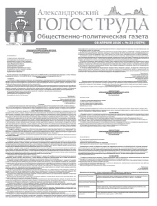 08 АПРЕЛЯ 2026 г. № 23 (15574) Основана 10 июня 1917 года ПОСТАНОВЛЕНИЕ ПРЕДСЕДАТЕЛЯ СОВЕТА НАРОДНЫХ ДЕПУТАТОВ АЛЕКСАНДРОВСКОГО МУНИЦИПАЛЬНОГО ОКРУГА ВЛАДИМИРСКОЙ ОБЛАСТИ 03.04.2026 № 3-п О предоставлении гражданами, претендующими на замещение должностей муниципальной службы в Совете народных депутатов Александровского муниципального округа Владимирской области, и муниципальными служащими Совета народных депутатов Александровского муниципального округа Владимирской области сведений о доходах, об имуществе и обязательствах имущественного характера В целях реализации статьи 8 Федерального закона от 25.12.2008 № 273-ФЗ «О противодействии коррупции» и статьи 10 Закона Владимирской области от 30.05.2007 № 58-ОЗ «О муниципальной службе во Владимирской области», ПОСТАНОВЛЯЮ: 1. Утвердить: 1) Положение о предоставлении гражданами, претендующими на замещение должностей муниципальной службы в Совете народных депутатов Александровского муниципального округа Владимирской области, и муниципальными служащими Совета народных депутатов Александровского муниципального округа Владимирской области сведений о доходах, об имуществе и обязательствах имущественного характера согласно приложению 1. 2) Перечень должностей муниципальной службы Совета народных депутатов Александровского муниципального округа Владимирской области, при назначении на которые граждане и при замещении которых муниципальные служащие обязаны представлять сведения о доходах, об имуществе и обязательствах имущественного характера, а также сведения о доходах, об имуществе и обязательствах имущественного характера своих супруги (супруга) и несовершеннолетних детей согласно приложению 2. 2. Постановление вступает в силу со дня его принятия и подлежит официальному опубликованию. Председатель Совета народных депутатов Александровского муниципального округа Владимирской области Л. М. Кузьмина Приложение 1 к постановлению председателя Совета народных депутатов Александровского муниципального округа Владимирской области от 03.04.2026 № 3-п Положение о предоставлении гражданами, претендующими на замещение должностей муниципальной службы в Совете народных депутатов Александровского муниципального округа Владимирской области, и муниципальными служащими Совета народных депутатов Александровского муниципального округа Владимирской области сведений о доходах, об имуществе и обязательствах имущественного характера 1. Настоящим Положением определяется порядок представления гражданами, претендующими на замещение должностей муниципальной службы в Совете народных депутатов Александровского муниципального округа Владимирской области и муниципальными служащими Совета народных депутатов Александровского муниципального округа Владимирской области (далее — должности муниципальной службы) сведений о доходах, об имуществе их обязательствах имущественного характера, об имуществе их обязательствах имущественного характера супруги (супруга) и несовершеннолетних детей, (далее — Сведения). 2. Обязанность представлять в соответствии с действующим законодательством возлагается на гражданина, претендующего на замещение должности муниципальной службы, предусмотренной Перечнем должностей муниципальной службы Совета народных депутатов Александровского муниципального окру