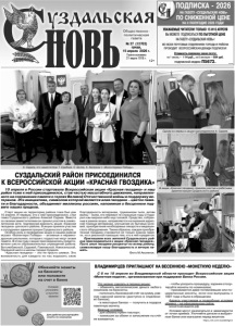Газета основана 21 марта 1918 г. № 27 (12702) среда, 15 апреля 2026 г. Общественно политическая газета 12+ Старт акции на территории района тоже был дан 10 апреля. И первым, кто к ней присоединился, стал глава Суздальского района Алексей Сараев. Вместе со своими заместителями он принял участие в символическом акте, подчеркнув важность акции «Красная гвоздика» для всего района. В акции приняли участие и сотрудники администрации Суздальского района. Особую роль в проведении акции в нашем районе играют «Волонтеры Победы» – активные и неравнодушные школьники, которые с гордостью несут знамя памяти. В этом году к акции присоединились представители шести образовательных учреждений района: Боголюбовской, Садовой, Павловской, Новосельской, Порецкой школ и школы города Суздаля. «Красная гвоздика» – это не просто символ. Это возможность для каждого из нас выразить свою благодарность ветеранам, труженикам тыла, детям войны – всем, кто пережил те страшные годы и подарил нам мирное небо над головой. Средства, собранные в рамках акции, направляются на оказание адресной помощи ветеранам, улучшение их бытовых условий, приобретение необходимых лекарств и медицинского оборудования. Таким образом, каждая приобретенная гвоздика становится не только знаком памяти, но и реальной помощью тем, кто в ней нуждается. Приглашаем всех жителей Суздальского района присоединиться к акции «Красная гвоздика». Пусть алые гвоздики расцветут по всему району, символизируя нашу благодарность и вечную память. Фото М.Авсеенок. СУЗДАЛЬСКИЙ РАЙОН ПРИСОЕДИНИЛСЯ К ВСЕРОССИЙСКОЙ АКЦИИ «КРАСНАЯ ГВОЗДИКА» 10 апреля в России стартовала Всероссийская акция «Красная гвоздика» и наш район тоже к ней присоединился, став частью масштабного движения, направленного на сохранение памяти о героях Великой Отечественной войны и поддержку ветеранов. Эта инициатива, символом которой является алая гвоздика – цветок памяти и благодарности, объединяет миллионы россиян, напоминая о бесценном подвиге наших предков. Одним из первых к акции присоединился А. Сараев. А. Сараев, его заместители Т. Срибная, С. Белов, А. Авсеенок с «Волонтерами Победы». В акции «Красная гвоздика» приняли участие и работники администрации Суздальского района. Что можно сделать в период акции: - обменять металлические деньги любого номинала на банкноты; - пополнить банковский счёт на сумму, равную сданной мелочи (доступно в отделениях банков); - в некоторых банках — получить в подарок памятную монету. Важные условия: - для обмена нужен паспорт; - комиссия за обмен и зачисление на счёт не взимается; - чтобы ускорить процедуру, заранее отсортируйте монеты по номиналам; - принимаются даже потемневшие или поцарапанные монеты, если они выпущены с 1997 года и были в обращении. Адреса участников и подробные условия обмена – на официальном сайте: монетнаянеделя.рф Условия могут различаться в зависимости от точки приёма. Уточняйте детали в выбранном банке или магазине перед визитом. https://vk.com/suzdalregion ВЛАДИМИРЦЕВ ПРИГЛАШАЮТ НА ВЕСЕННЮЮ «МОНЕТНУЮ НЕДЕЛЮ» С 6 по 18 апреля во Владимирской области проходит Всероссийская акция «Монетная неделя», организованная при поддержке Банка России. УВАЖАЕМЫЕ ЧИТАТЕЛИ! ТОЛЬКО 15 И16 АПРЕЛЯ ВЫ МОЖЕТЕ ПОДПИСАТЬСЯ ПО ЛЬГОТНОЙ ЦЕНЕ НА ГАЗЕТУ «СУЗДАЛЬСКАЯ НОВЬ»! ВО ВСЕХ ПОЧТОВЫХ ОТДЕЛЕНИЯХ ГОРОДА И РАЙО