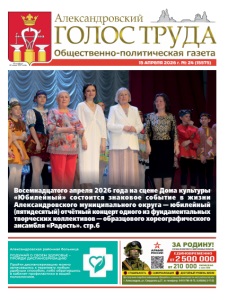 15 АПРЕЛЯ 2026 г. № 24 (15575) Основана 10 июня 1917 года Восемнадцатого апреля 2026 года на сцене Дома культуры «Юбилейный» состоится знаковое событие в жизни Александровского муниципального округа — юбилейный (пятидесятый) отчётный концерт одного из фундаментальных творческих коллективов — образцового хореографического ансамбля «Радость». стр.6